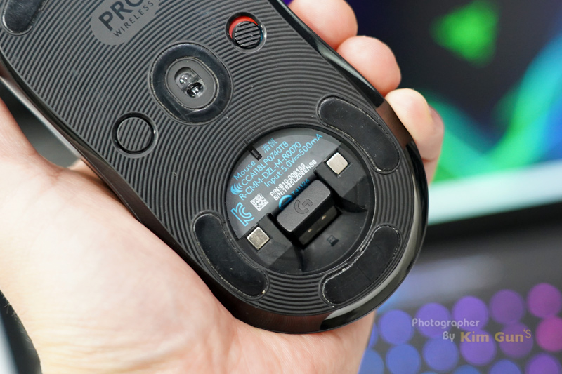 PC와는 USB 리시버로 연결되는요. 리시버를 마우스 하단에 보관할 수 있어서 마우스를 휴대할 때도 쉽게 가지고 다닐 수 있습니다. 자신만의 장비를 챙겨 다니는 사람들에게는 유용하겠죠?