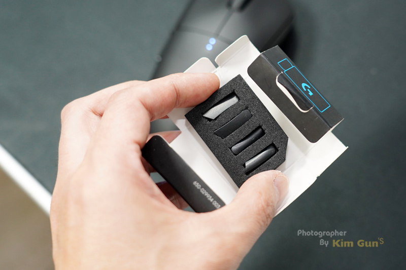 프로 게이밍 기어답게 구성품도 알차게 들어 있는데요. USB 연장 케이블과 확장 젠더 그리고 좌/우 버튼을 커스텀할 수 있는 추가 버튼이 들어 있습니다. 역시 G PRO 답게 여러 가지로 활용할 수 있는 액세서리를 담고 있네요.