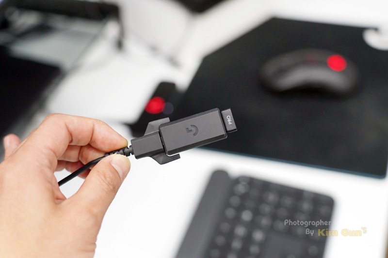 파워플레이를 사용하면 USB 수신기를 연결하지 않아도 되는데, 기본적인 연결 케이블이 길기도 하지만 G PRO와 같은 USB 케이블을 지원해서 G PRO에 있는 젠더와 케이블까지 함께 하면 꽤 멀리까지 연결할 수 있습니다.