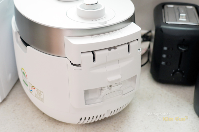 이것도 압력밥솥 방식인데, 외부 증기 배출구와 후면에 위치한 물받이와 밥물 배수로까지 전부 분리해서 세척할 수 있습니다. 예전에는 세척이나 이런 게 꽤 까다로웠고 내부 커버 정도만 분리할 수 있었는데 요즘은 이런 부분에 민감하니 구조가 꽤 좋은 편입니다.