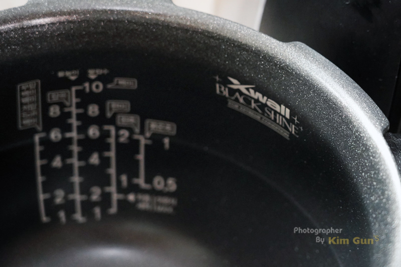 엑스웰 블랙 샤인 코팅이 되어 있는데요. 아마도 프라이팬이나 오븐에 사용하는 코팅 기술과 비슷한 것 같습니다. 코팅이 되어 있으니 관리가 용의 하고 밥맛을 지키는데 도움을 주겠죠? 쿠쿠 제품 대부분이 사용되는 코팅입니다.