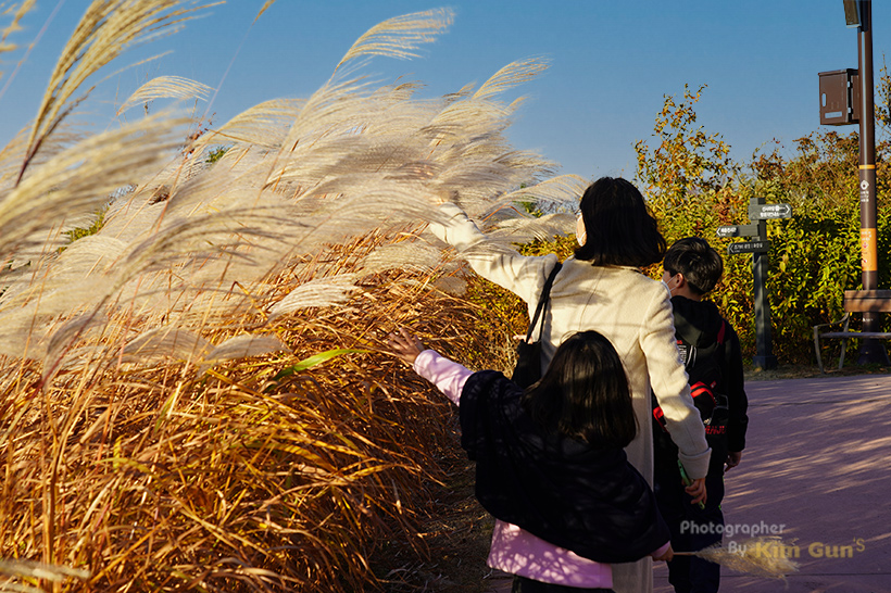 갈대군락이 꽤 넓게 자리하고 있어서 여기저기서 사진도 남기고 가을을 느끼기에 참 좋더군요. 군락 사이로 길이 있어서 굳이 갈대밭을 헤집고 들어가지 않아도 멋진 사진을 남길 수 있습니다. 그래도 꼭 안쪽으로 밟고 들어가는 사람들이 있던데 절대 그러진 맙시다.