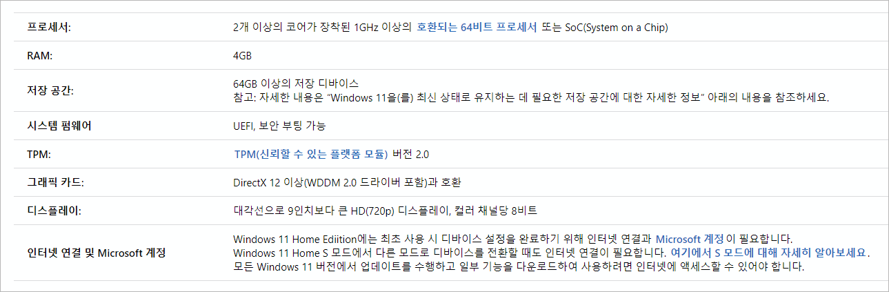 - 윈도우 11 호환성 체크 프로그램 다운로드 : https://aka.ms/GetPCHealthCheckApp