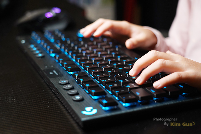 G913은 TKL 모델뿐만 아니라 풀사이즈의 배열의 제품도 있는데요. 선호도는 취향이겠지만 개인적으론 텐키리스 키보드를 선호하는 편인데 텐키리스 키보드는 부피가 적어서 책상 위를 넓게 사용할 수 있는 장점이 있습니다.