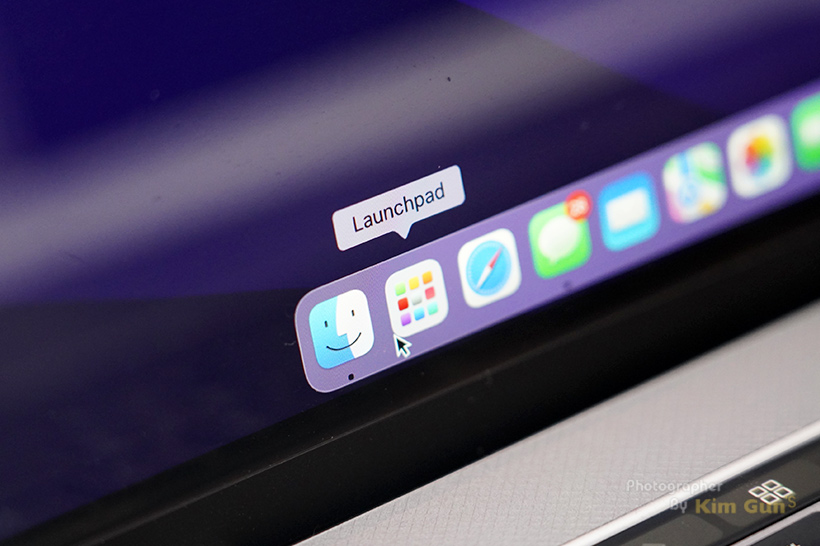 맥은 하단 독바를 가지고 있는데요. 독바 가장 우측에 얼굴 모양 아이콘 옆에 Launchpad가 있습니다. 여기에는 설치되어 있는 앱들을 보는 바로가기인데요. 첫 페이지에 기본 앱들이 있습니다.