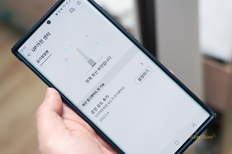 LG 씽큐 앱과 연동해서 굳이 리모컨이 없어도 스마트폰으로 현재 상태를 확인하고 세팅을 바꿔 줄 수 있는데 LG UP가전센터가 있어서 다양한 기능의 업그레이드도 쉽게 할 수 있습니다. 최근에 다이렉트청정모드가 추가되면서 기능이 업그레이드되었는데 단순히 기능 변경뿐만 아니라 소비자들의 다양한 요청들을 빠르게 반영해 줄 수도 있어서 기대되는 부분 이기도 합니다.