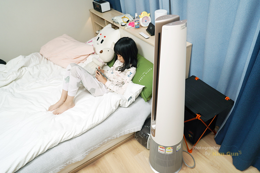 아이들 방에도 자주 사용하게 되는데 아이들은 방에서 책도 보고 여가 시간도 보내는 등 여러 가지 활동을 하면서 오랜 시간 머무는 공간이라 공기질에 대한 고민이 항상 있었는데 에어로타워는 그런 걱정과 고민을 한방에 날려 줍니다.