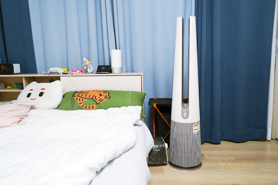 아무래도 가장 많은 시간을 사용하는 공간은 침실인데요. 아직 공기가 차갑긴 하지만 실내 공기가 답답하면 수면에 방해가 되기도 하는데 에어로타워가 공기질을 바꿔주니까 쾌적한 수면을 할 수 있었습니다.