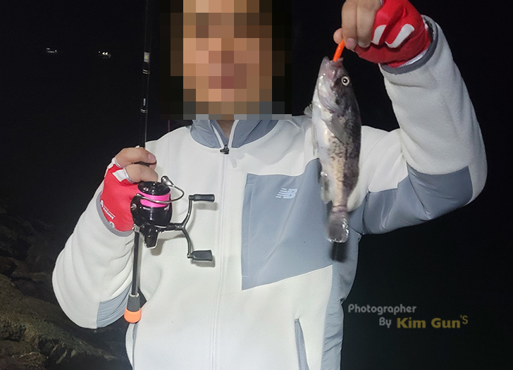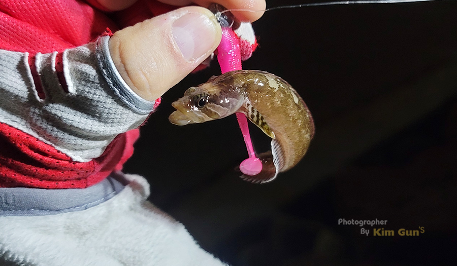 요건 낚시 다니면서 처음 보는 생명체인데 노래미 새끼 같기도 하고 뭔지를 잘 모르겠네요. 시화방조제 낚시로 노래미도 종종 나오니까 노래미 치어 같습니다. 옆구리에 걸려서 올라왔네요.