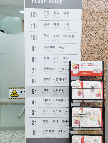 1층부터 12층까지 관련 있는 품목들로 카테고리별로 나눠 놓았는데요. 층이 높아서 그렇지 좀 규모가 큰 다이소를 생각하면 그렇게 넓은 편은 아닙니다. 그래도 카테고리를 잘 나눠두고 있어서 필요한 것을 찾기는 참 좋은데, 보통 다른 다이소는 진열장에만 들어 있는데 백화점처럼 디스플레이도 잘해두고 있습니다.
