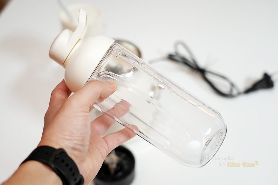 컵에는 빨대가 달려 있는 전용 뚜껑도 제공되고 앞서 언급했듯 텀블러에도 연결되기 때문에 별도의 용기에 따로 담을 필요가 없어서 아침에 빠르게 준비해서 들고 다니기도 편해요. 저는 아침을 잘 안 먹어서 아침에 주스나 즙 같은 것을 자주 먹는데 아주 편리합니다.