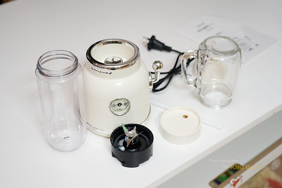 단미 미니 블렌더는 레트로한 느낌의 디자인을 하고 있는데요. 그래서 그런지 주방 어디에 놓아도 잘 어울리는 디자인입니다. 심플하니 깔끔하니까요. 미니 블렌더답게 군더더기 없는 깔끔한 느낌~